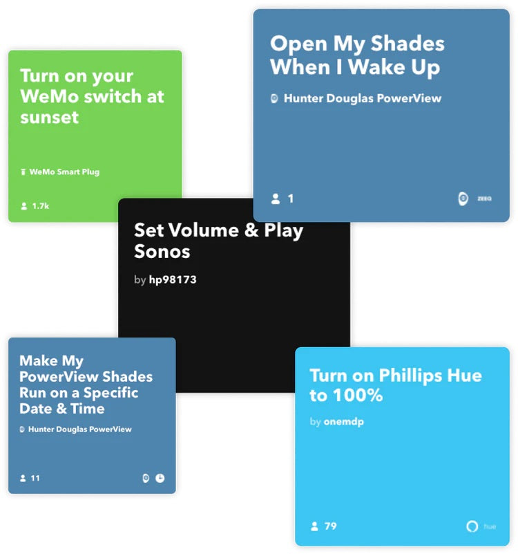 Can be used with HunterDouglas, Philip Hue and Sonos.