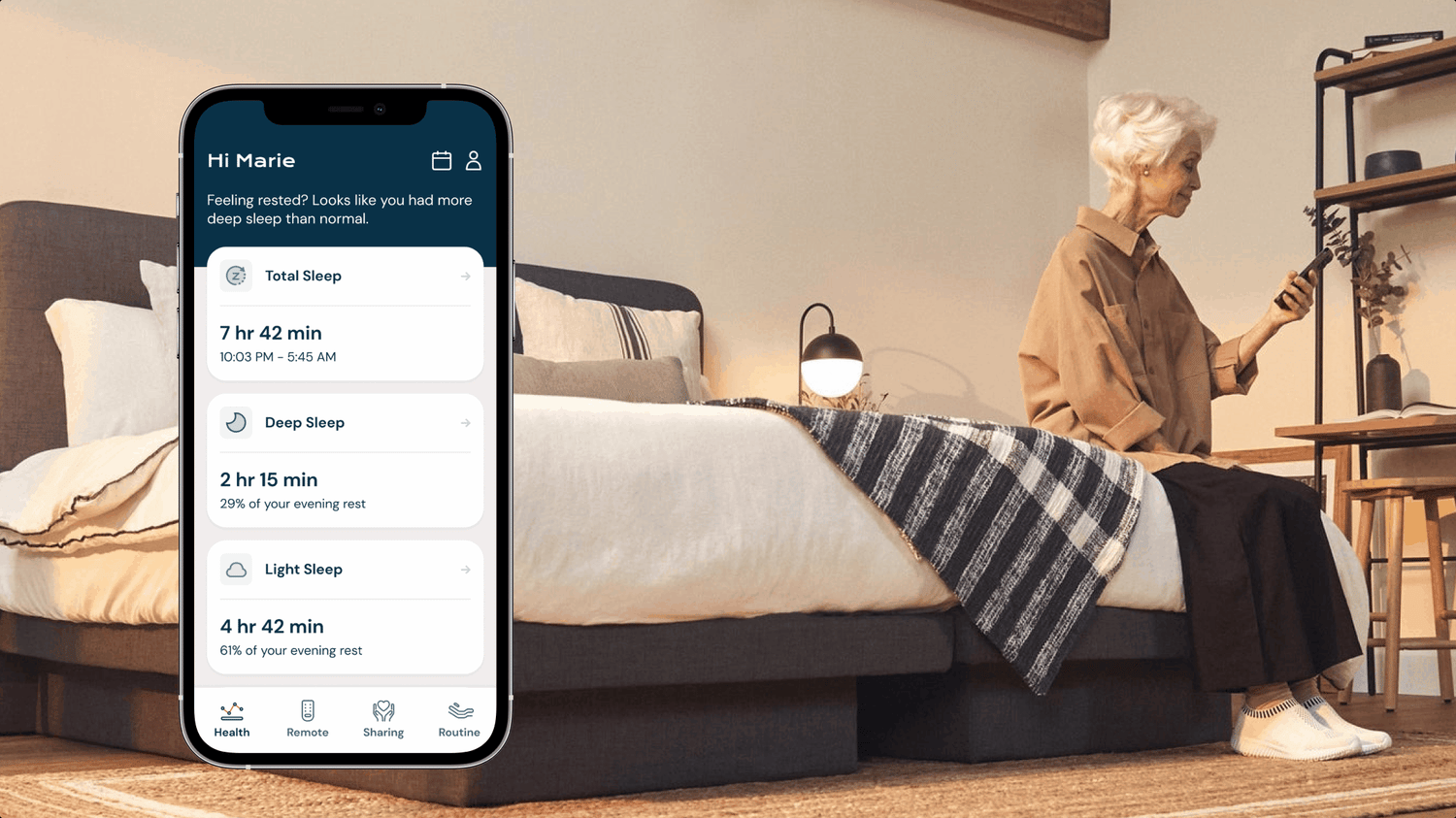Accessible from your smartphone or tablet, your vitals are easily visible in the Dawn House app. Share health reports with your loved ones, customize your bed settings and sync your bed with your smart home devices - all in the palm of your hand.