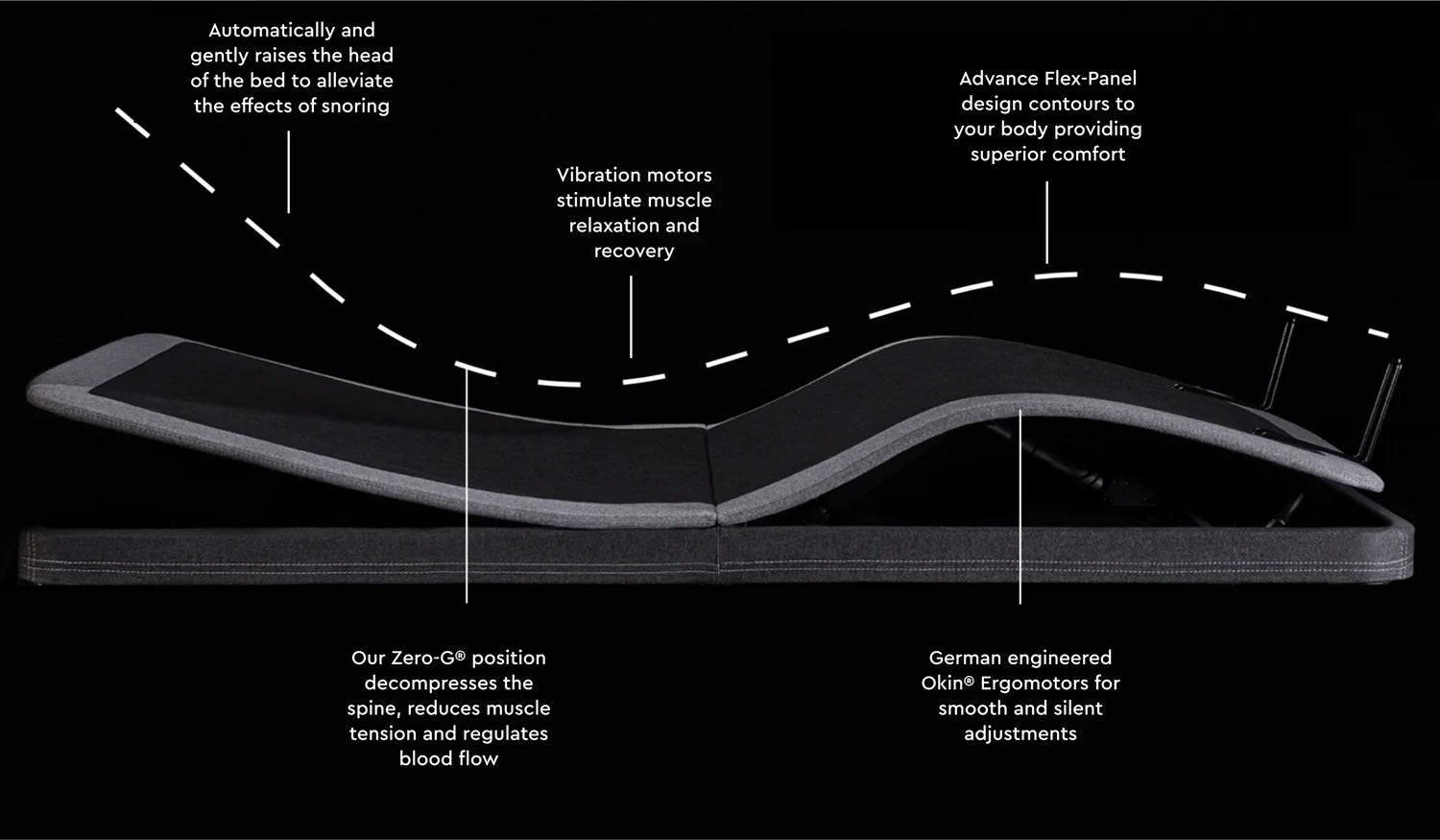 4) Control your bed with the advanced feature remote and set alarms to wake to a gentle massage or positioned in Zero-G®.